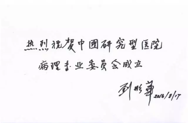 在中国研究型医院学会病理学专委会创建之际,中国科研实验室院士刘彤华教授发来题词: