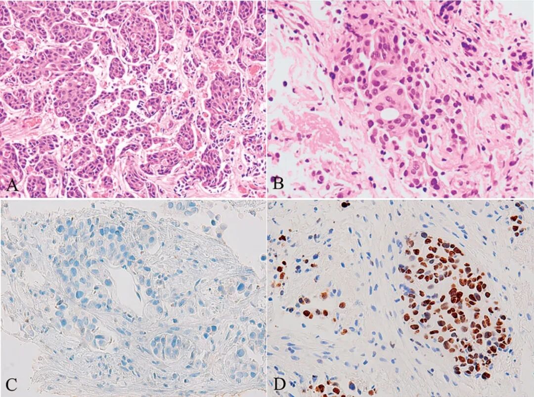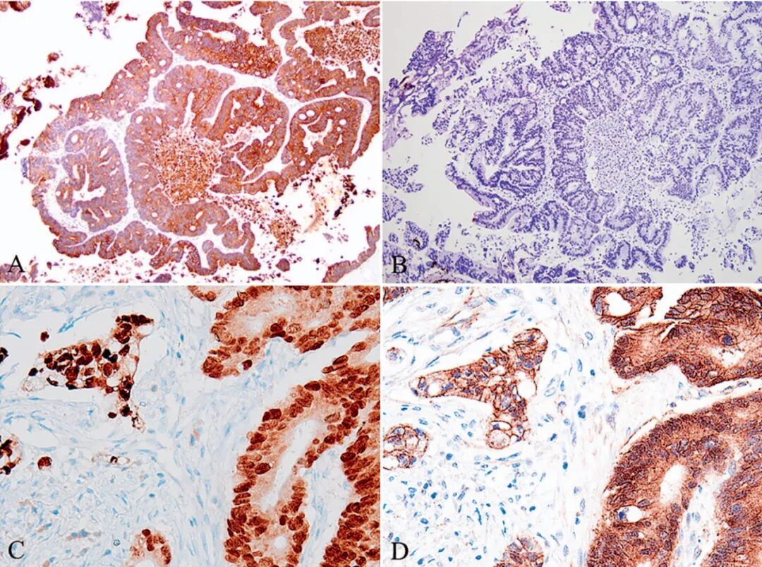 图1D. 膀胱微乳头状尿路上皮癌。GATA3阳性表达