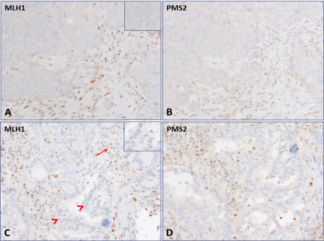 MMR缺陷型结直肠癌中的MLH1和PMS2染色