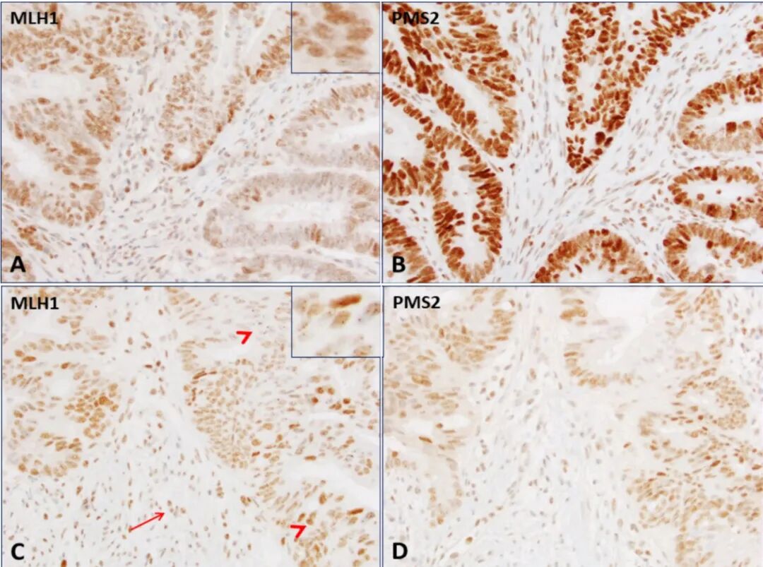 MMR功能正常的结直肠癌中的MLH1和PMS2染色